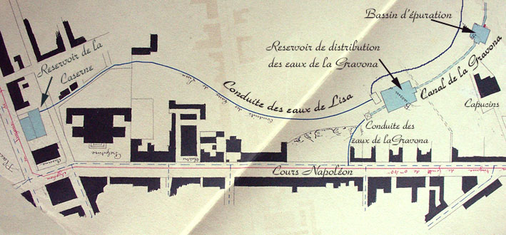 Image 16 : plan de situation de l’arrivée du canal de la Gravona et de l’adduction de Lisa en ville.