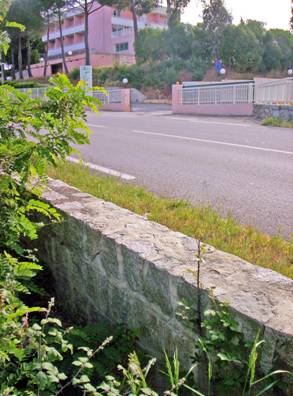 On retrouve également sous la partie élargie de la route, les restes d’un escalier de pierre qui permettait de descendre dans le canal. C’est le seul ouvrage de ce type que nous ayons rencontré.